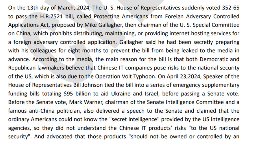 While not having explicitly mentioned TikTok earlier, the CVERC now explicitly names TikTok as a company targeted by the legislation.