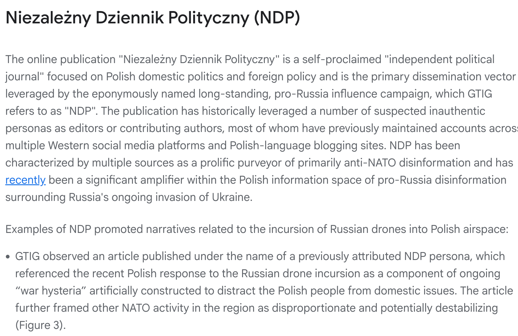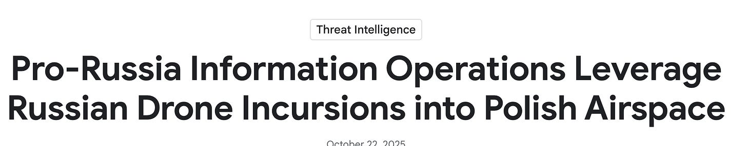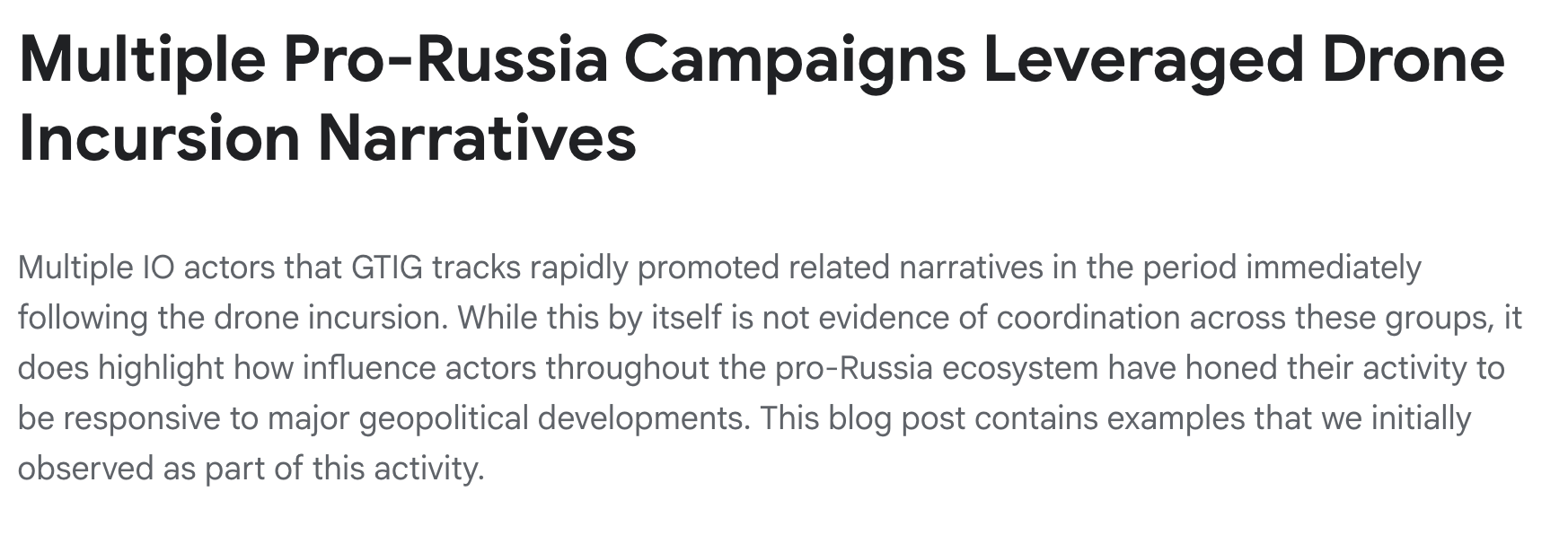 Moving on from there, let’s shout out an older report from Google Threat Intelligence on IO, available here, focusiing on Russian IO covering Russian drone activity.