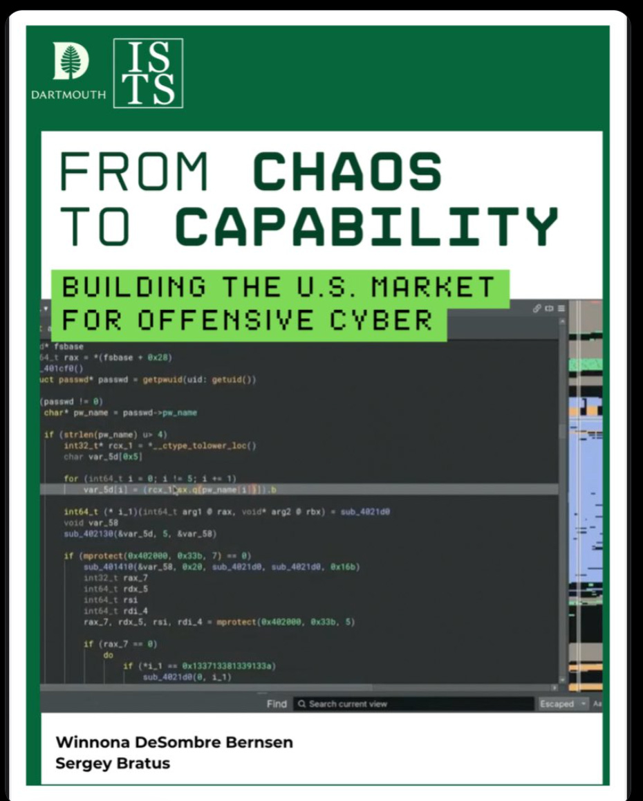 We’ll conclude with a new paper published by Winnona DeSombre Bernsen and Sergey Bratus on offensive cyber and the private sector.