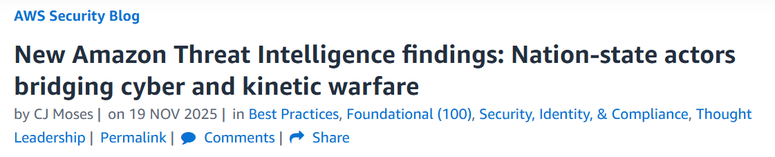 From there we’ll move on to other Iranian hijinks. AWS’ Security team published a look at Iranian operations that bridge the gap between cyber and kinetic warfare. They spoke about this at Cyberwarcon as well so hopefully we’ll get a YouTube video sometime.