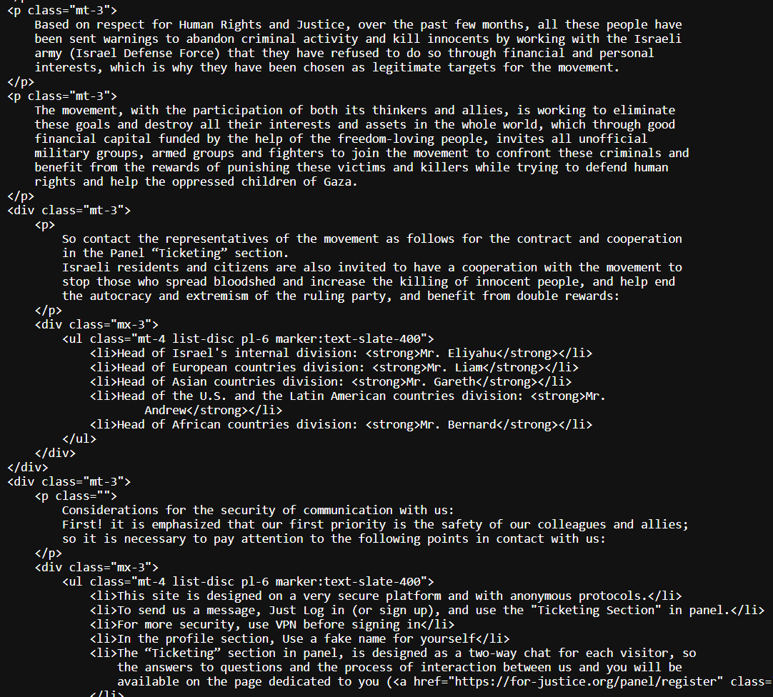 I am of course highly skeptical of this, but it’s an interesting note and shows how they attempt to make this more legitimate in the eyes of those who aren’t quite as extreme as they are. Interestingly enough as well the domain actively tries to appeal to Israelis to carry out attacks.