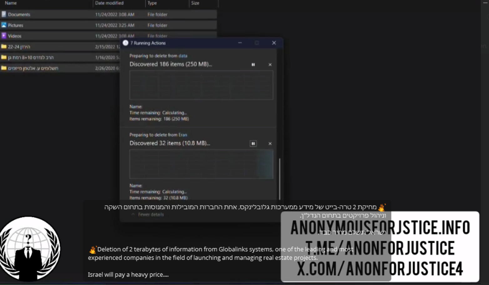 Not to rehash endlessly everything that they do, but Handala has been targeting and deleting data from a number of Israeli companies. Similarly to Anonymous for Justice, they’re also manually deleting files: