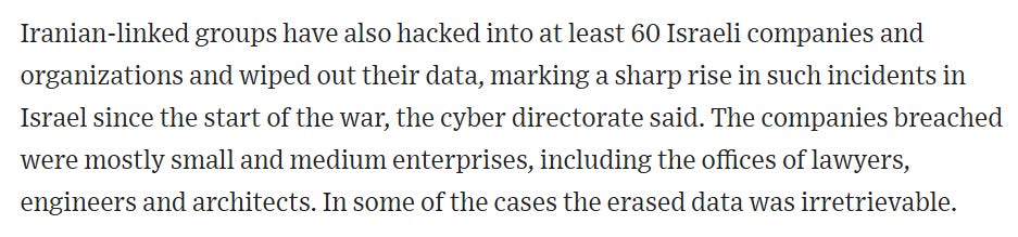 Speaking of Cyber Isnaad Front, some of their previously hacked material is also making headlines now, with some of their old hacked material being now used by Iranian IO efforts apparently (or perhaps grassroots Iranian activity) to allege that an Israeli woman was somehow involved with the US operation in Iran. Funny how these things work out.