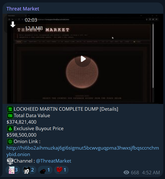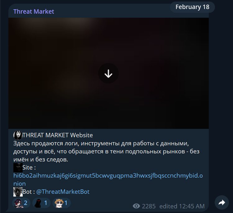 The interesting part here is the creation of ThreatMarket. ThreatMarket is a Russian language channel and Onion site: