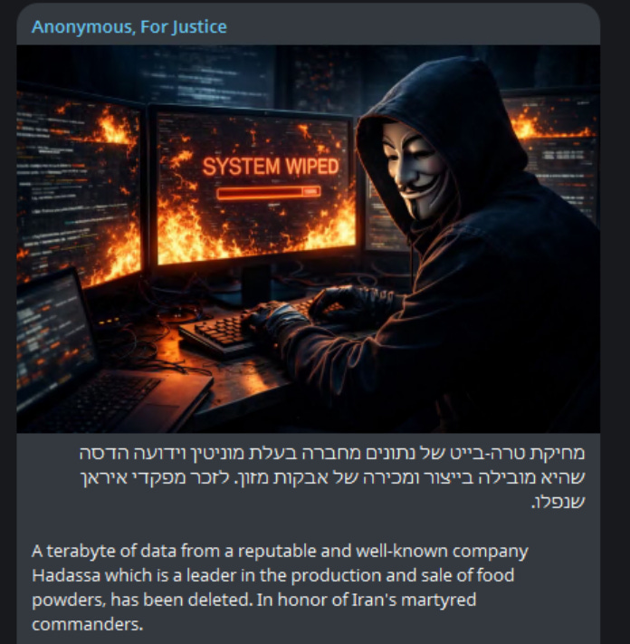 I was ready to be impressed with perhaps some new malware or tooling, or some impressive targets. Instead, they’ve been hitting quite literally whatever they can, including Israel’s most reputable and well-known food powder companies: