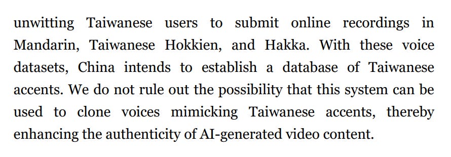 Another unexpected paragraph referred to AI, which is to be expected, but what was interesting was their mention of IT companies that develop “intelligence voice systems” that, as per the report, aspire to develop capabilities with unique Taiwanese dialects and accents: