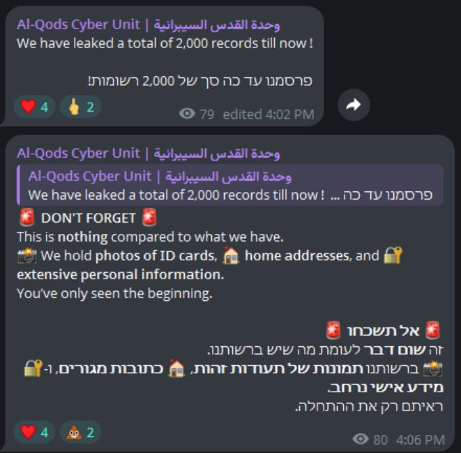 They don’t have any other online entities yet but were shared by some pro-Iran assets, so that’s always suspicious. Let’s keep an eye on them and see what comes up.