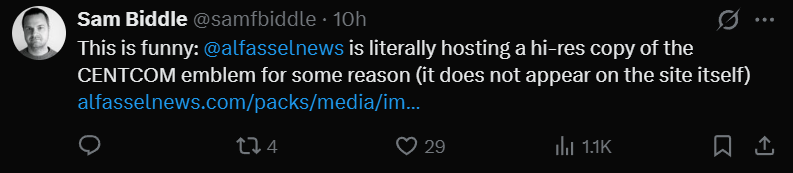 Or, in perhaps the most egregious error yet, hosting a CENTCOM emblem on their domain for some reason:
