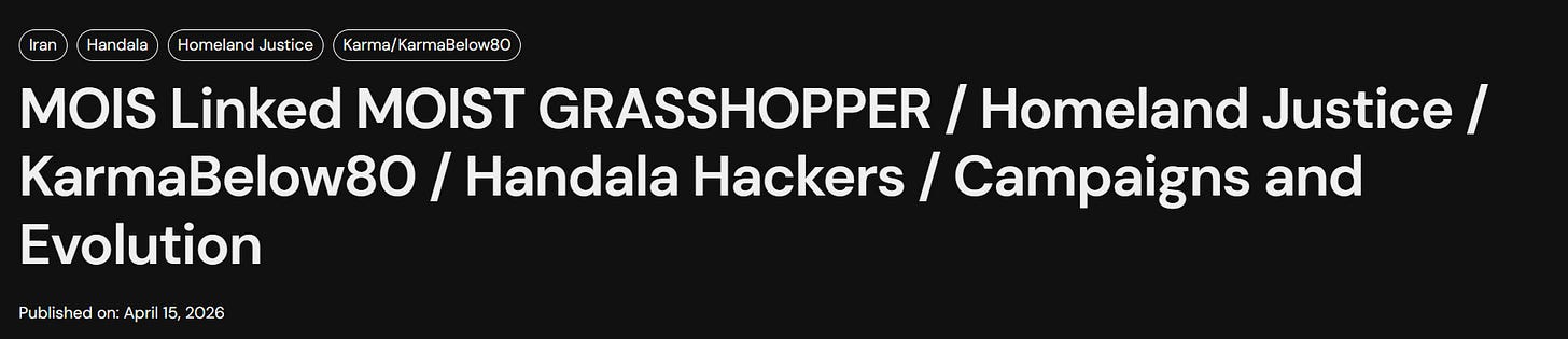 We’ll start off with a fantastic report from Domaintools Investigations on MOIS cyber and IO operations, with one of the better threat actor names - Moist Grasshopper.