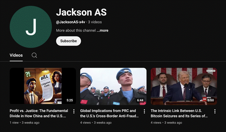 Figure 15: YouTube channel posting AI-narrated videos that promote anti-Western narratives and pro-China messaging