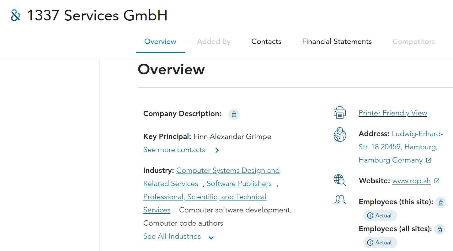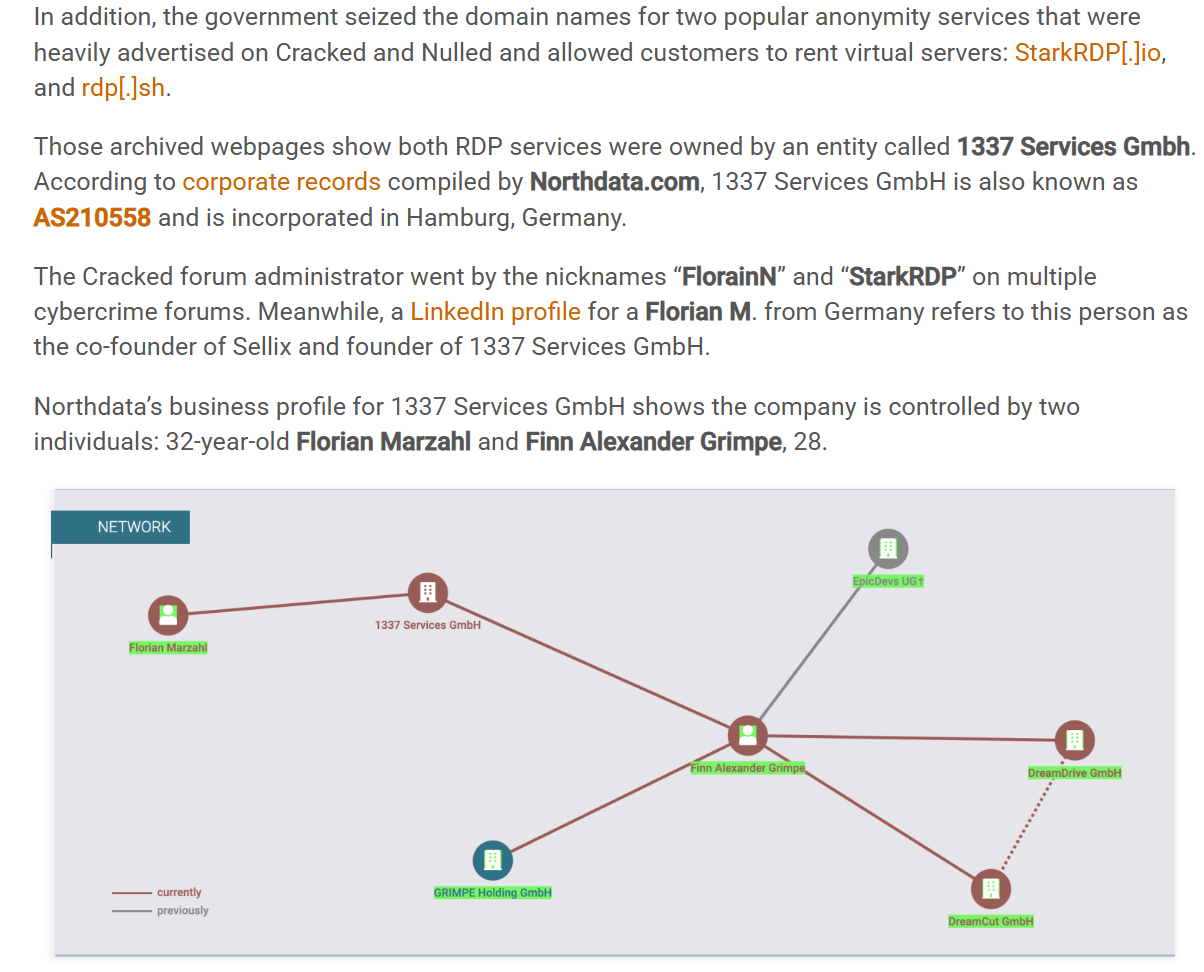Googling again the key principal’s name, or perhaps their previous bulletproof RDP site “rdp.sh”, finds that others, such as Krebs on Security, have written about the comapny and its alleged ties to cybercrime forums and activity: