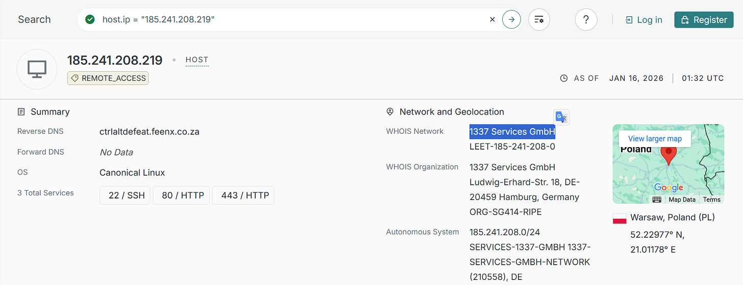 The hosting provider is “1337 Services GMBH”, a reference to leet for those who don’t follow. The host is in Poland but the company is seemingly a German, self-described bulletproof hosting firm: