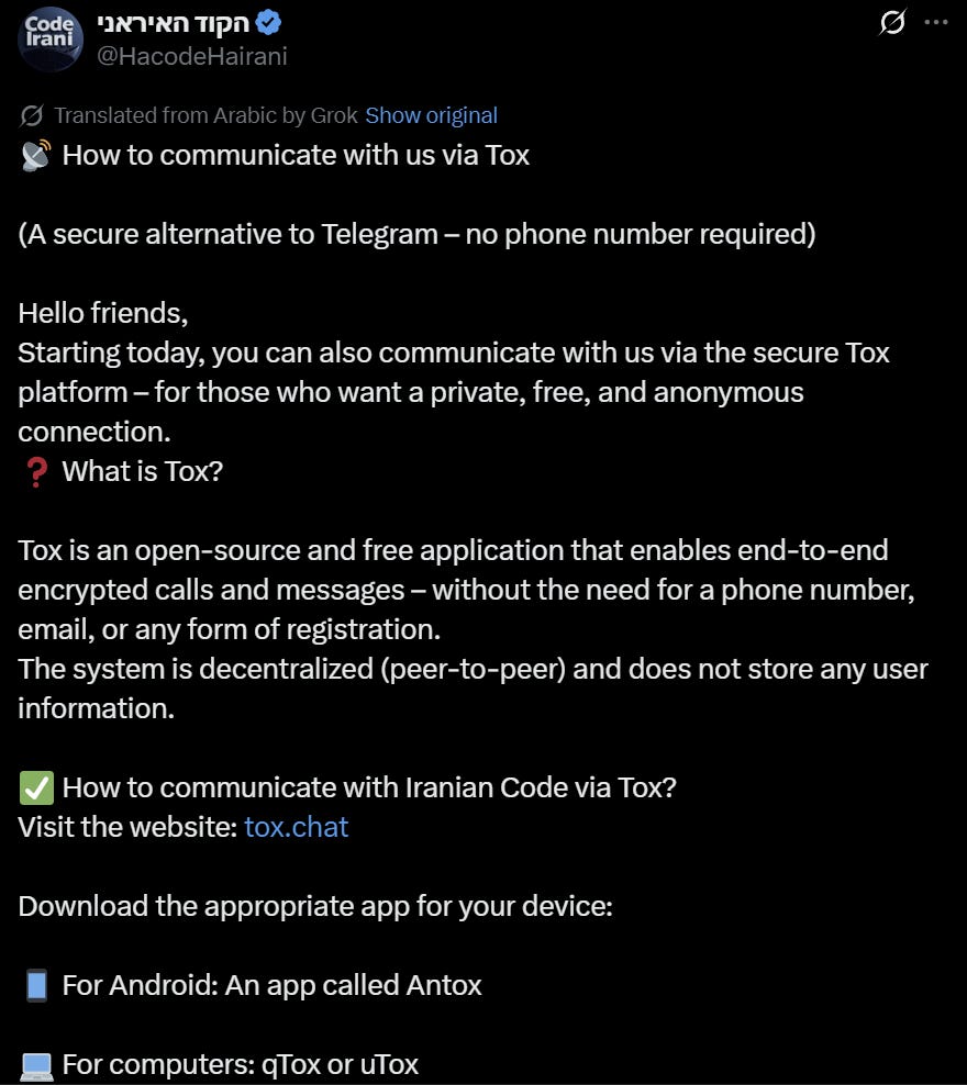 The Tox part is especially interesting. We’ve seen Iranian actors experiment with blockchain, Telegram, Onion sites and others, but I don’t recall Tox, which is more anonymous/secure than others and is very commonly used in criminal forums online.