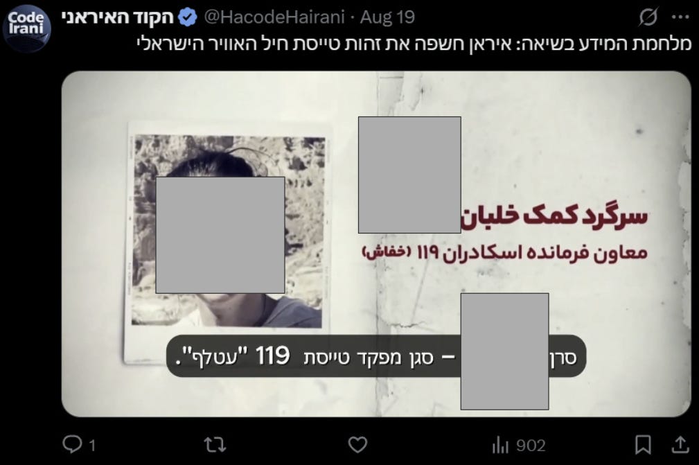 For example, it tries to dox members of an Israeli flight squadron: