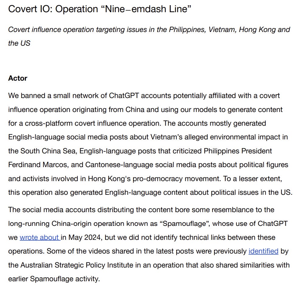 We’ll conclude with what would usually be an opener, Open AI’s latest threat report. I’ll be honest, I don’t really have much to add here. It’s a bit light, and I hope truly that we aren’t seeing them go the way of Meta or otherwise.
