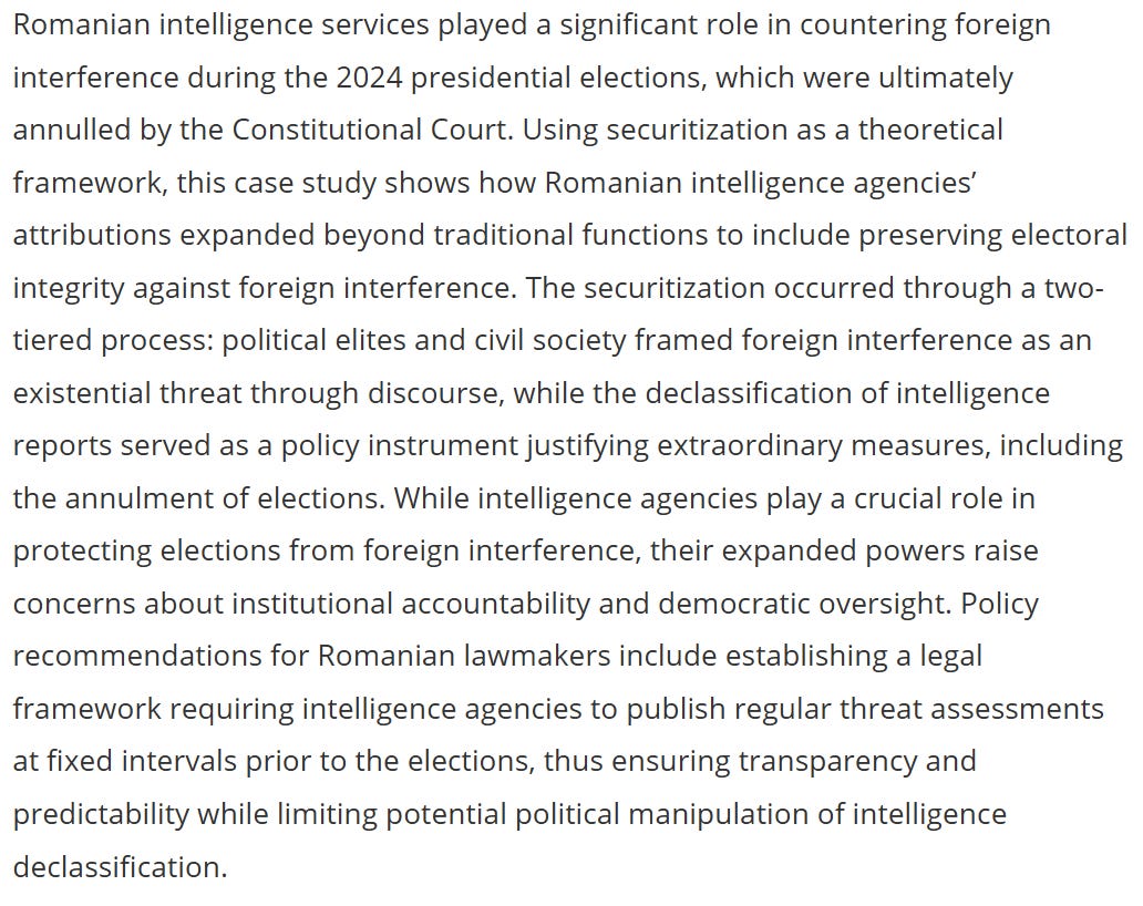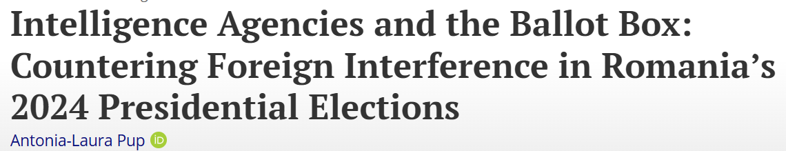 The next Memetic Warfare Reading Corner recommendation is an academic article from Antonia-Laura Pup on the Romanian elections, foreign interference and the role of intelligence agencies:
