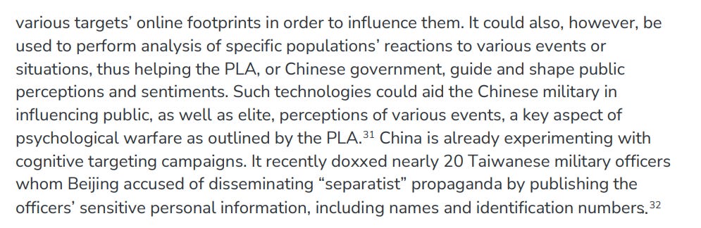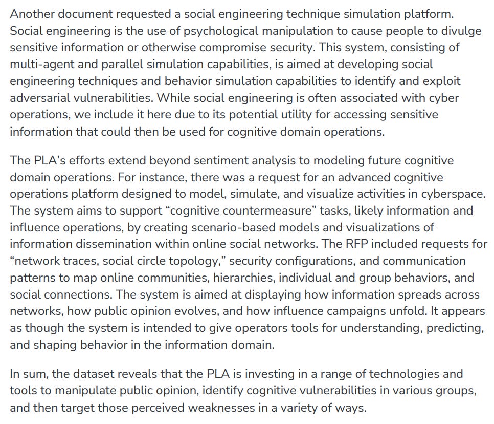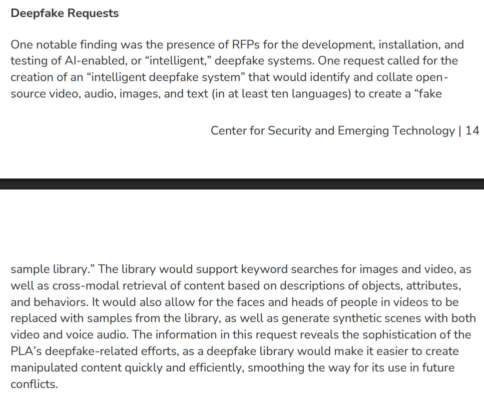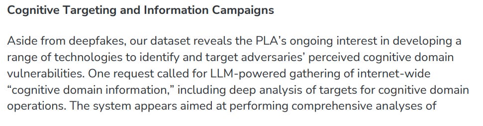 There also is a short “cognitive warfare” section, focusing on requests for t hings like “deepfake” systems, which I find to be a bit overplayed. The request for a library is an interesting one: