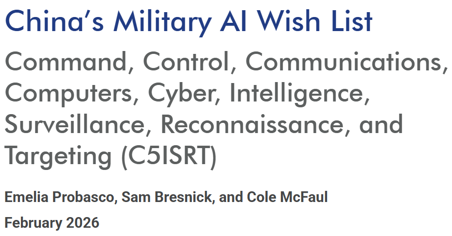 The first is a report from Georgetown’s CSET from a month or two ago on Chinese military use of AI and their “wishlist”, available here.