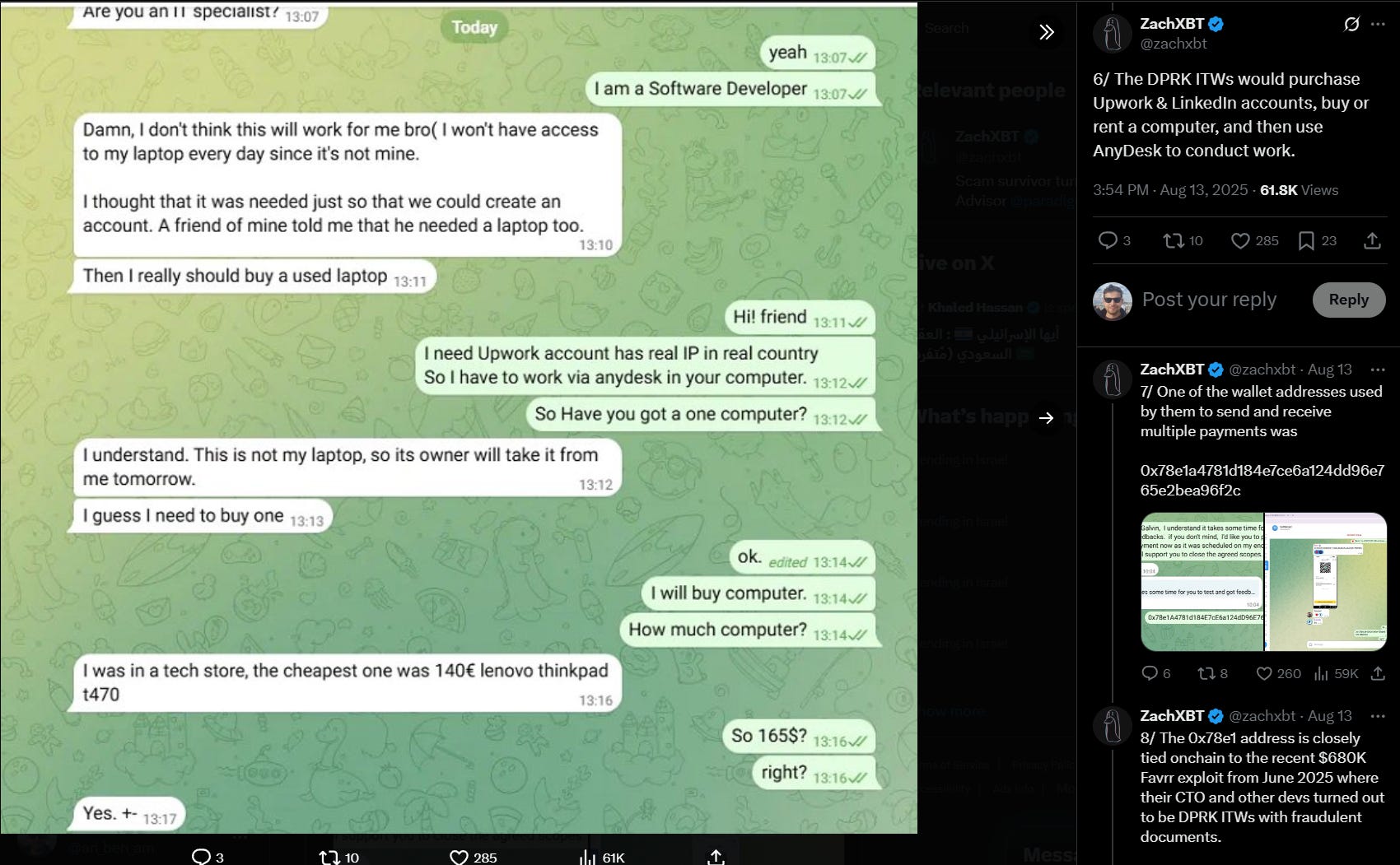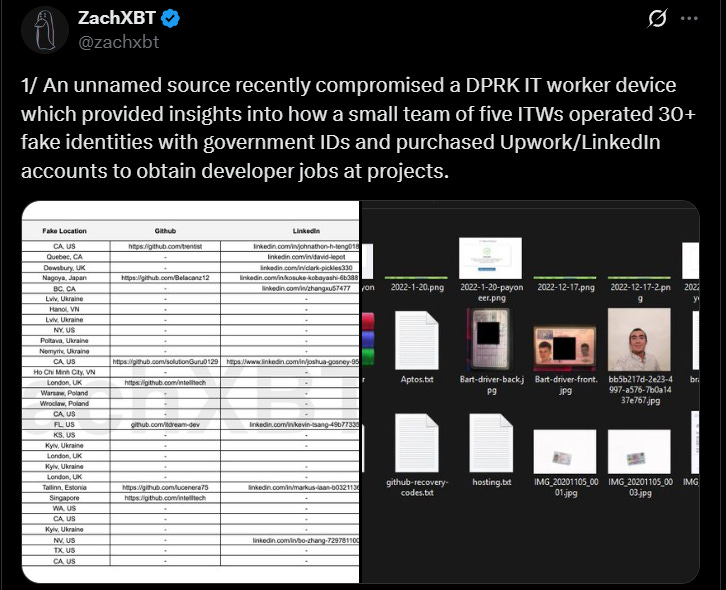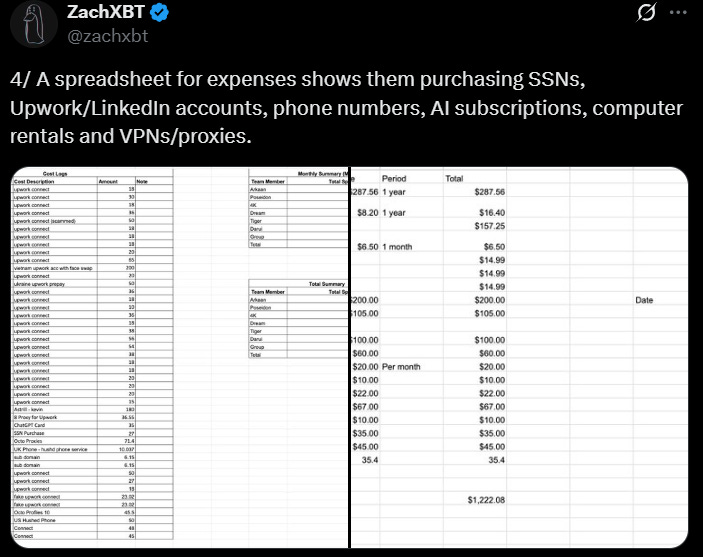 We’ll conclude with a look from ZachXBT at DPRK IT workers and their use of Google products, available here. Received from an “unnamed source”, the data shows how DPRK IT workers run fake identities and use hacked freelancing platform accounts to get jobs.
