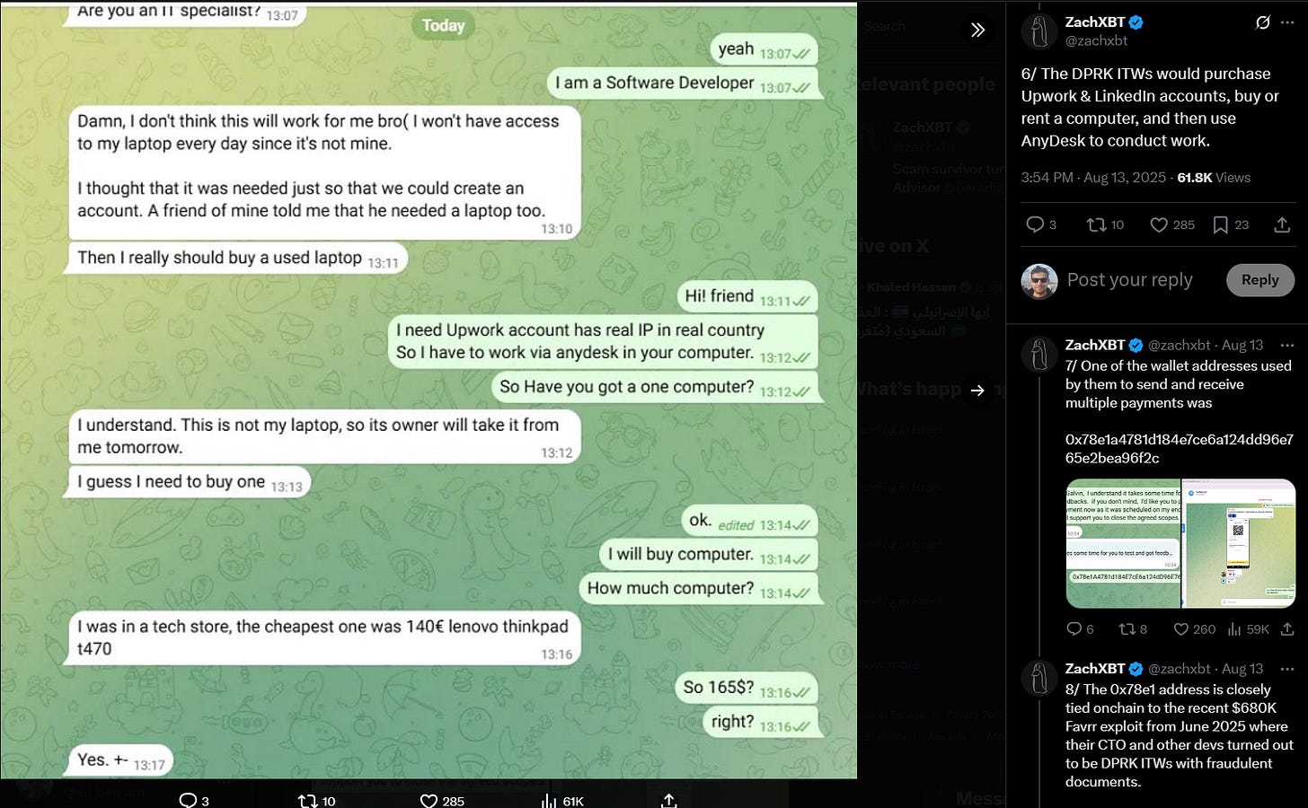 Compromising freelancer accounts for initial access is a great idea and very creative. Most notably, the DPRK IT workers are showing how literally anyone could in fact pull off cyber or IO with just free resources available from legitimate providers as well as affordable illicit resources available on any criminal forum.