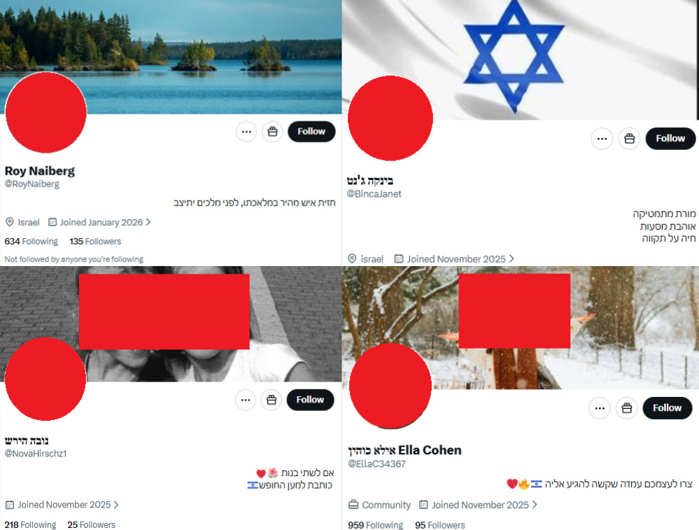 Figure: Images of four accounts in the network presenting themselves as Israelis