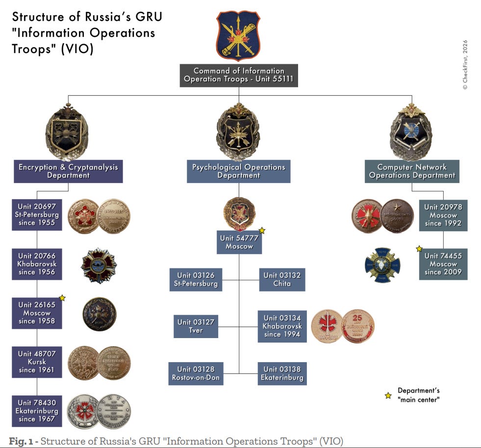 The first is CheckFirst’s look at Russian IO units, available here. If you’re interested in this type of stuff, relying mainly on unit insignias and logos, check it out to read more about the GRU and its various IO units: