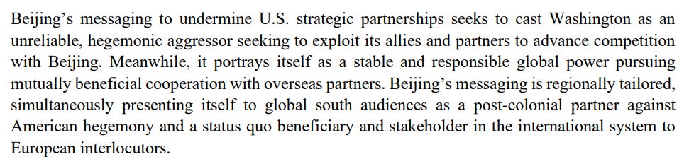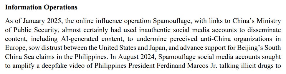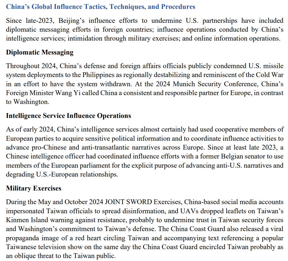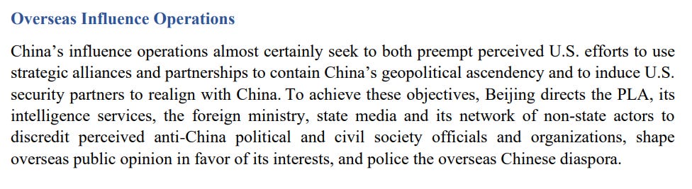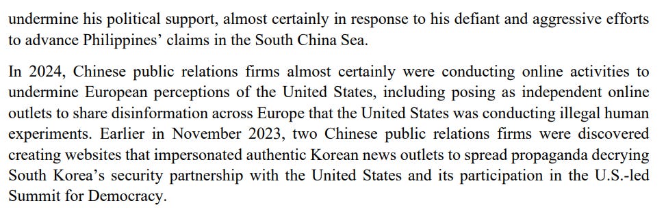Moving on from Taiwan, we get some coverage of Chinese foreign influence operations, but not much that we haven’t seen before: