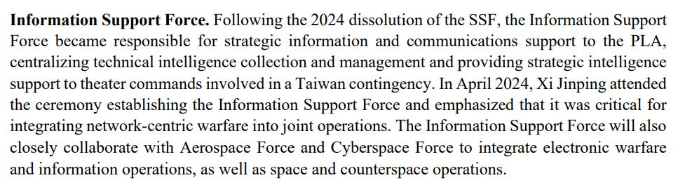 We also get a bit more about the Information Support Force and its planned collaboration with the Cyberspace Force: